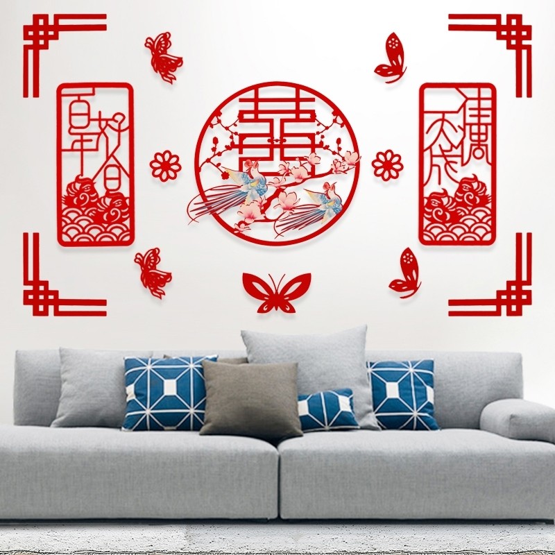 大门楼梯台阶贴大门喜字门贴结婚专用婚房装修套装客厅装饰网红。热门设计联盟服务商