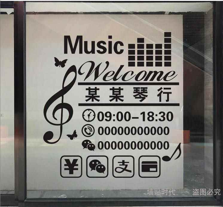 琴行营业时间h玻璃门贴纸钢琴乐器音乐舞蹈艺术培训班装饰墙贴画热门设计联盟服务商