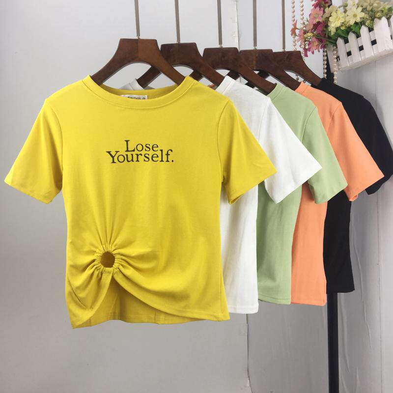 短款上衣学生2020夏季新款T恤女短袖圆领字母圆环设计感上衣潮热门设计联盟服务商