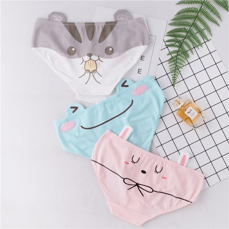 3条装呆萌卡通印花内裤女纯棉舒适内裤女可爱带耳中腰学生三角裤热门设计联盟服务商